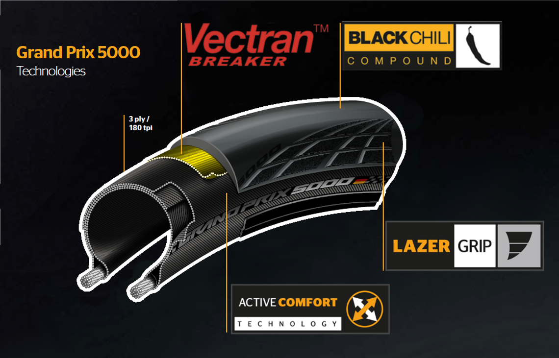 So whether in training or competition, rain or shine, cold or warm, the Continental Grand Prix 5000 is a better all-round tyre than ever before.