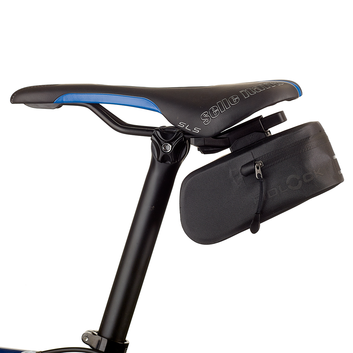 PUSH the button - the lightweight PUSH saddle bag 600 by Fidlock not only offers a high volume to carry a large number of accessories, but also impresses with a clever mounting system. The PUSH technology combines a magnetic mount with a mechanical snap lock and thus guarantees easy handling and a safe attachment even when riding off the road. The Fidlock bag can be removed from the saddle by pushing a button, whilst it is enough to hold it close to the magnetic catch on the saddle rail for attachment. Thanks to the power of the magnet, the PUSH saddle bag 600 is automatically forced into the mechanical ratchet mechanism where it locks in place. As it is made from waterproof material and features a welded zipper, the saddle bag is also well protected from moisture. The clever zipper garage shows with how much love for detail Fidlock has developed this bag. Yet, the best bit is that nothing rattles!