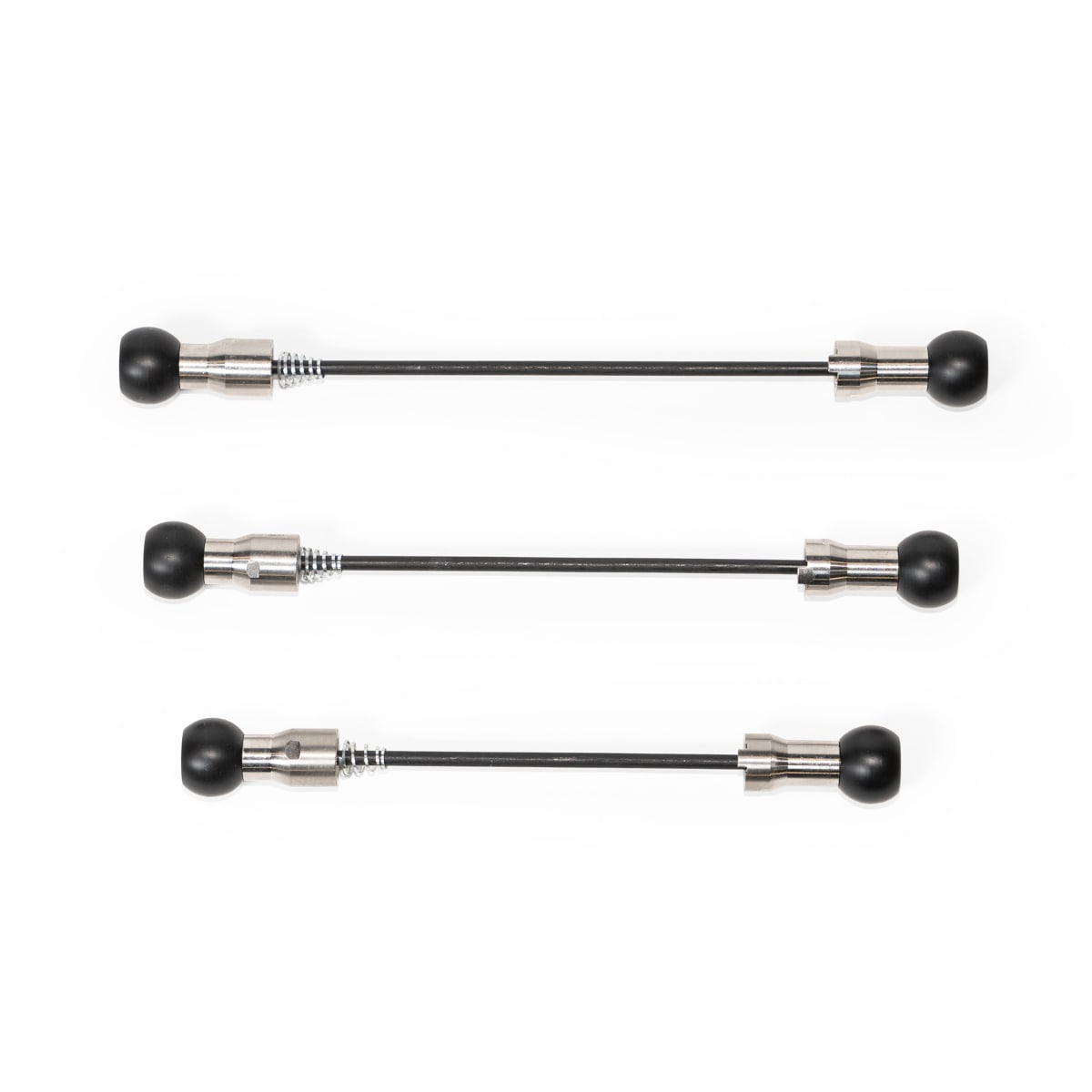 Replace the existing 5mm QR quick release on your rear wheel with the Ballz quick release axle to attach the Burley Coho XC single wheel cargo trailer to your bike. The quick-release axle is available in different lengths for different hub widths or rear triangle installation dimensions (please indicate your selection).