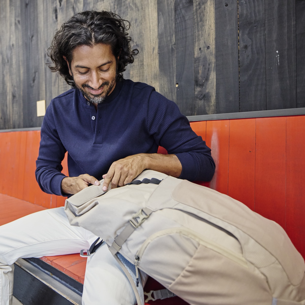 • Roll-top closure is simply fixed to the front of the backpack via a hook
