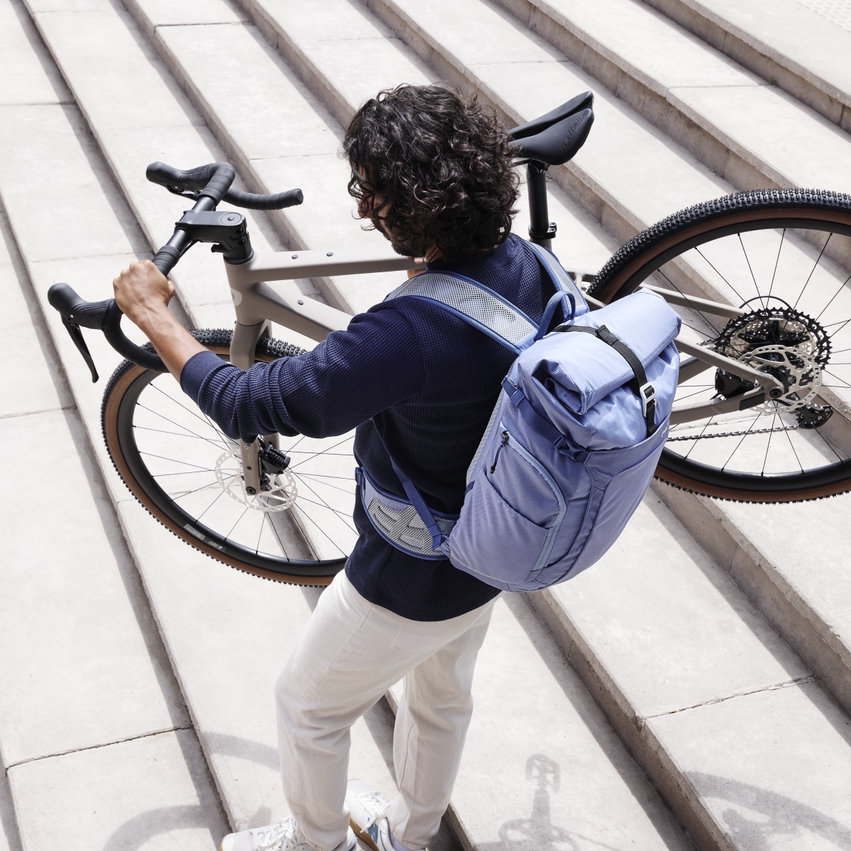 Made from top to bottom for work and short trips: Thanks to the roll-top closure, the volume of 32 litres suitable for everyday use can be flexibly expanded to up to 27 litres if you have more luggage with you at the weekend. The inner material of the waterproof main compartment is light in colour so that you can quickly find your items in the backpack. You will also find a removable organiser inside the backpack for your laptop, tablet, charging cable, etc. There are four pockets on the outside of the backpack, two slip pockets and two zip pockets for your water bottles. The slip pocket on the front of the bike pack is perfect for your helmet, for example, when you're not on your bike. The FLOW also comes with breathable straps, a padded back and removable hip fins for a high level of comfort.