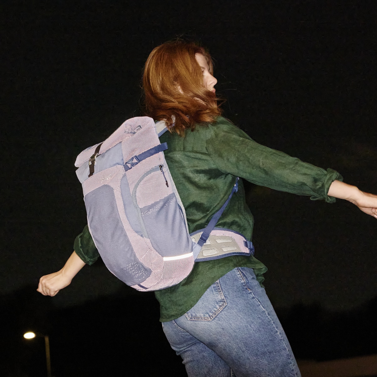 If you travel a lot in your everyday life, then make it easier with the REFLECTIVE FLOW backpack from otinga. This daypack is equipped with everything you need for your active lifestyle and is light as a feather. The main material is designed in the REFLECTIVE version with reflective dots. This not only makes the backpack stand out visually, it also helps you to be seen better by others at dusk.