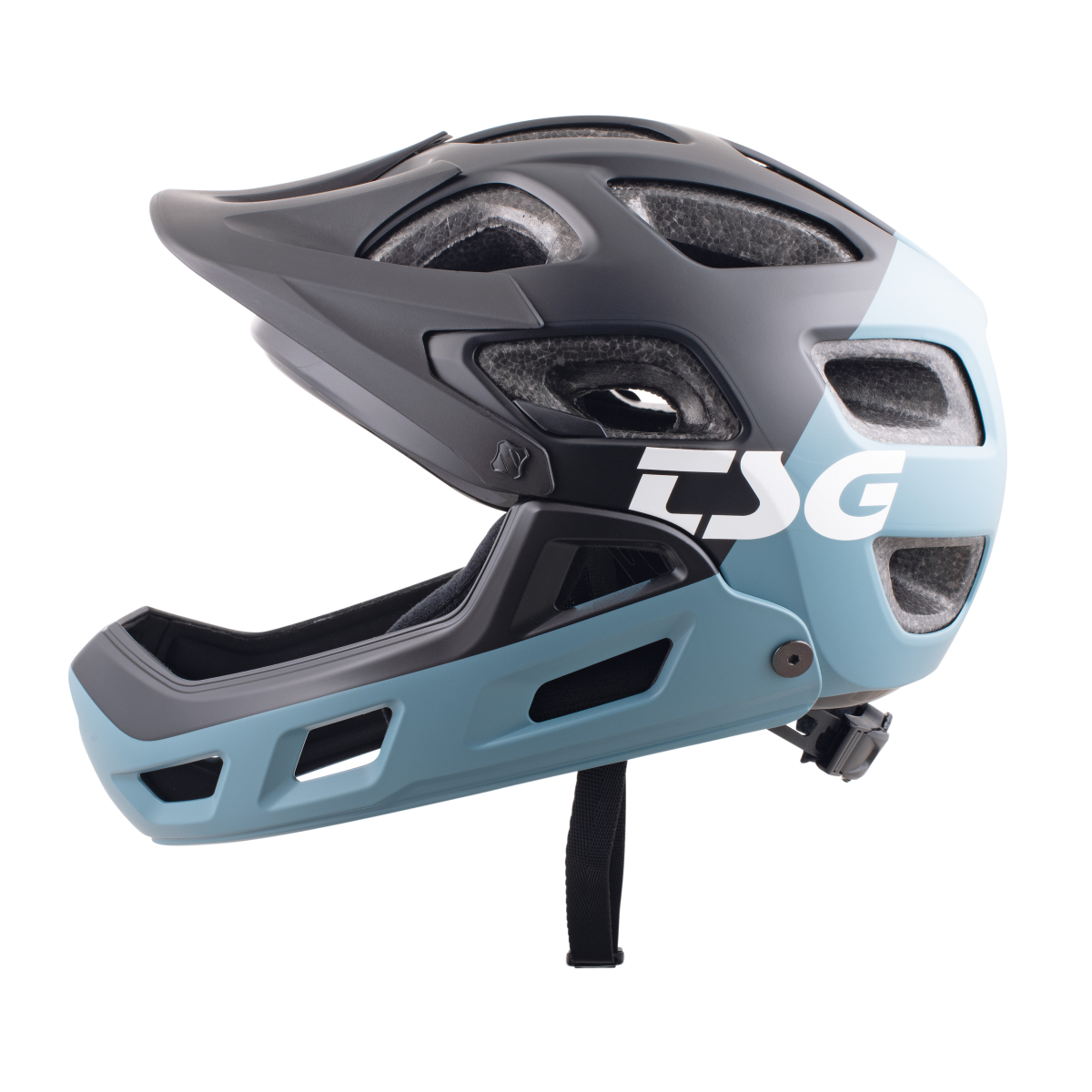 The SEEK YOUTH FR by TSG with removable full-face protection is a customisable MTB helmet for kids who love hard descents. It is ideal for All-Mountain, Freeride and Enduro use. On climbs, you can take off the face protection and attach it again on downhill sections to increase the protection. With 17 vents, the helmet offers good ventilation. This full-face helmet for kids offers optimum protection in the event of an impact and spoils with outstanding wearing comfort.
