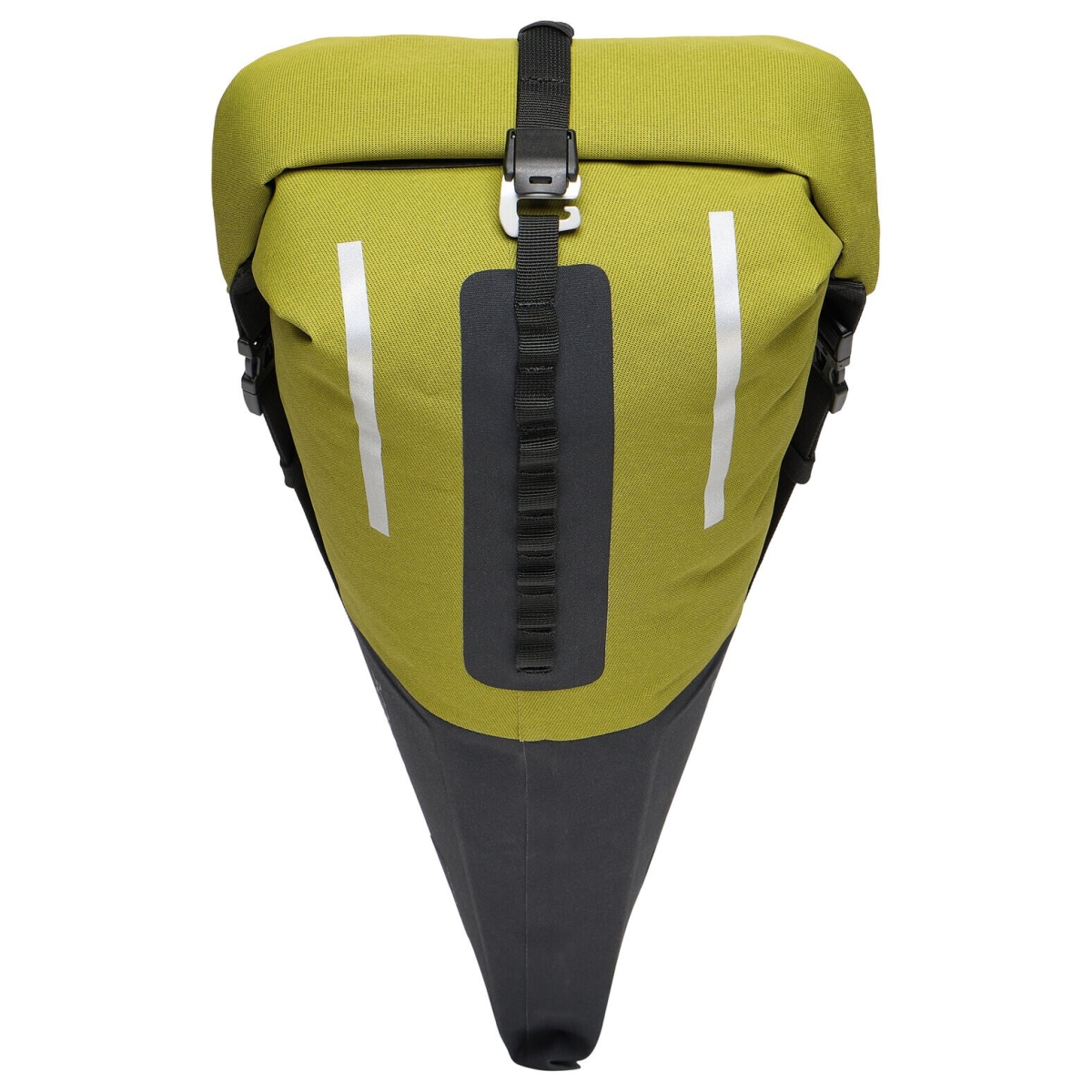 Thanks to its TPU coating, the material of the bag not only protects your luggage from wind and weather, it is also produced more sustainably by using recycled polyamide. Thanks to this combination of materials and waterproof roll-top closure, your equipment will reach its destination dry! To ensure that it stays on your saddle until the end, you attach the saddle bag to your bike at two points: once to your saddle rails using the KLICKfix Contour saddle adapter and once to the seat post with a wide Velcro fastener. Once the adapter is fixed in place, all you have to do is clip the bag into place and off you go!