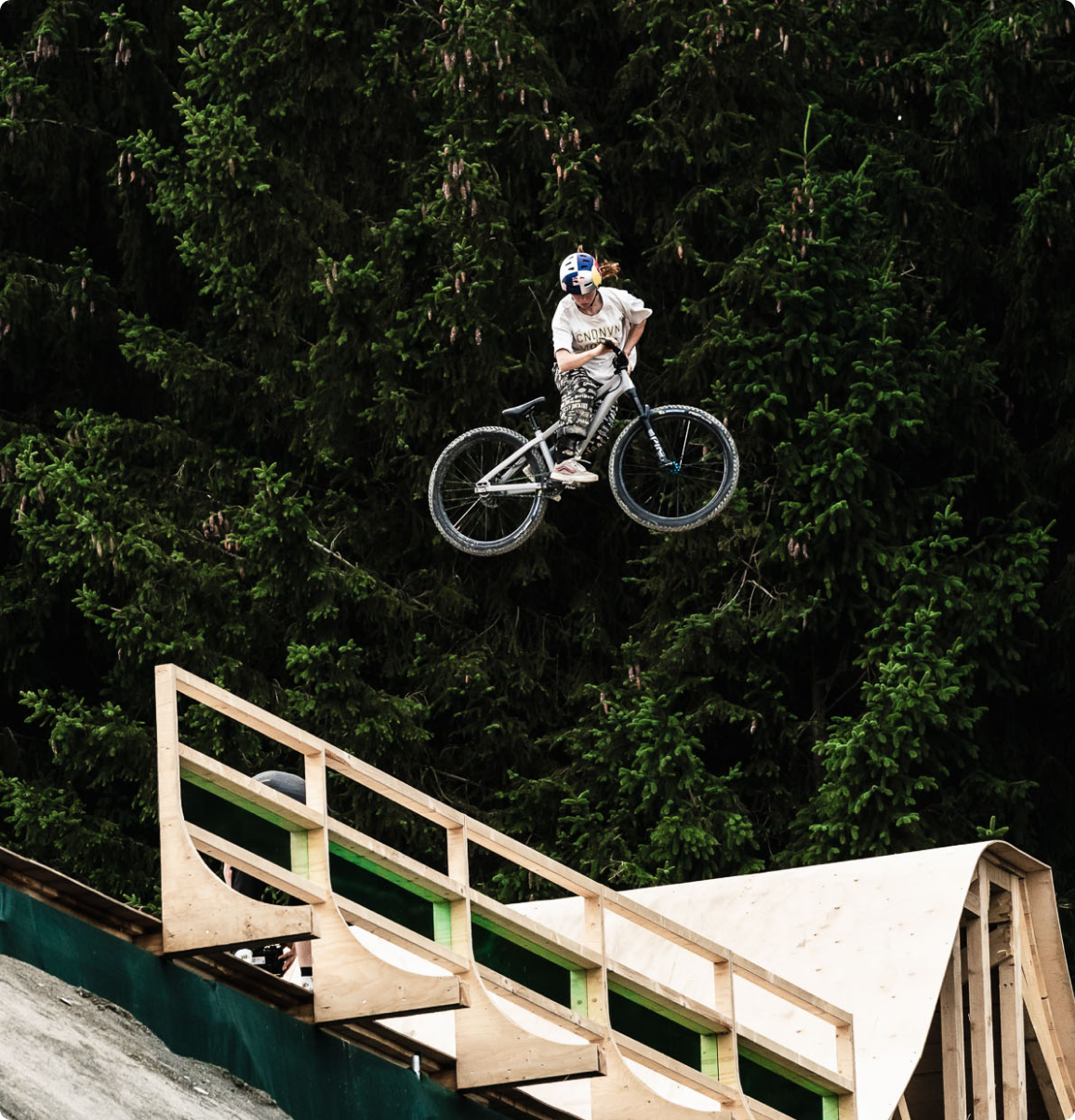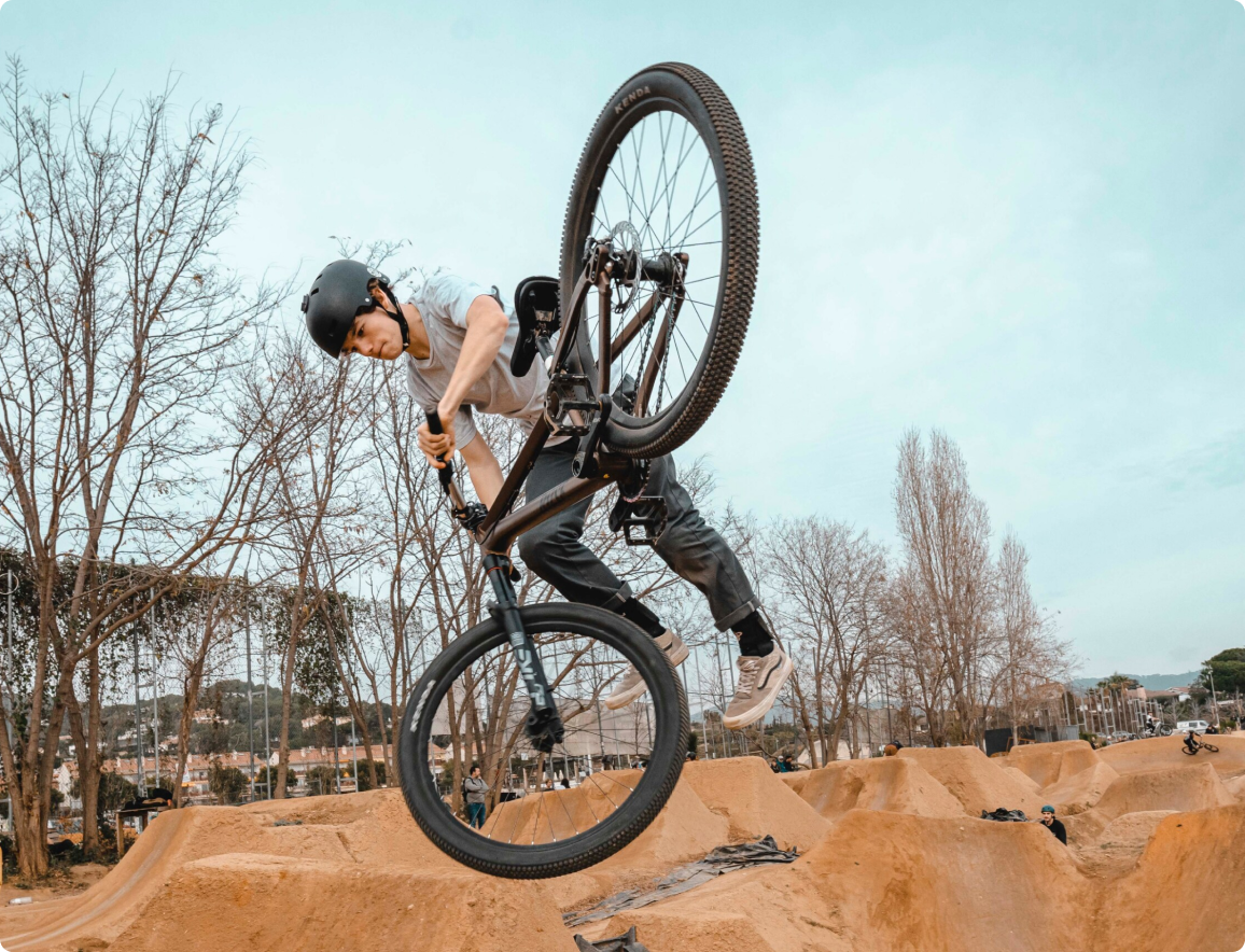 A dirt bike is a specialised mountain bike for jumps, tricks and fast manoeuvres on dirt jumps, pump tracks and in skate parks. It is characterised by a compact, robust frame, 26-inch wheels and minimalist equipment.