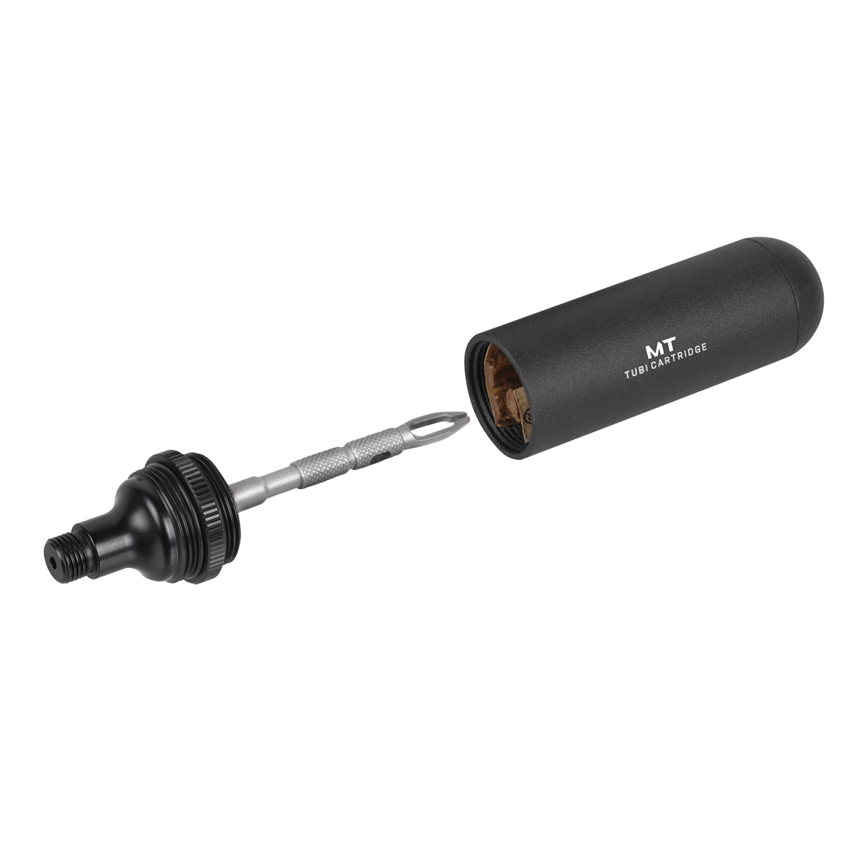 Patching and filling in one operation: The TubiCartridge Mt. from Topeak makes repairing tubeless tyres a matter of seconds. In combination with any CO2 inflator and cartridge, you can insert the tubeless patch into the damaged area and start immediately with the CO2 pressure filling. As soon as you have pulled out the plug piercer and removed the remains of the plug, the journey can continue.